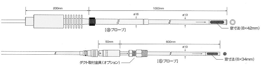 | センサプローブ | (a)タイプ : φ13(φ16) × 1000mm[1200mm] (ケーブル5m) (b)タイプ : φ10 × 600mm + φ19 × 50mm (ケーブル5m) |